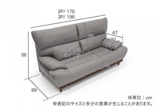 肌触りのよい撥水機能生地【WATER GUARD FABRIC® SILK TOUCH】を使用したソファです。低めの肘やハイバックな背もたれでゆったりとくつろぐことができます。お部屋に合わせてサイズを2P / 3P 、カラーは GY / BK からお選びいただけます。