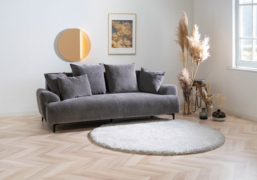 ふわっとしたタッチ感の【melange FABRIC】を使用したソファです。低めの肘や背もたれにあるクッションを使ってゆったりとくつろぐことができます。お部屋に合わせてサイズを3P、STの2パターンからお選びいただけます。