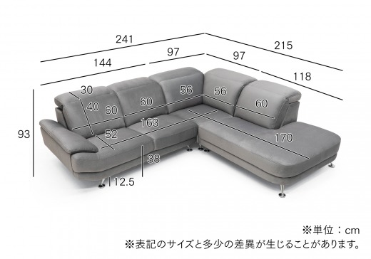 GY / グレー肌触りのよい撥水機能生地【WATER GUARD FABRIC® SILK TOUCH】を使用したコーナーカウチソファ