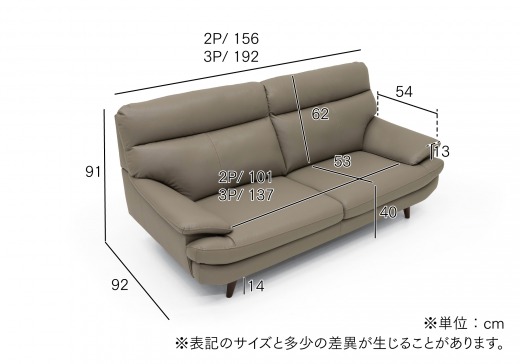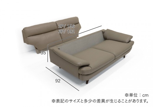 リアルレザーのような程良いツヤ・シワ感に、剛性を併せ持つフェイクレザーを使用しました。クセのないシンプルなフォルムで様々なインテリアに馴染むソファです。お部屋に合わせてサイズを2P/3Pからお選びいただけます。