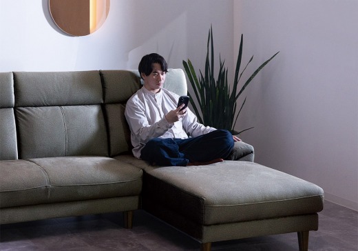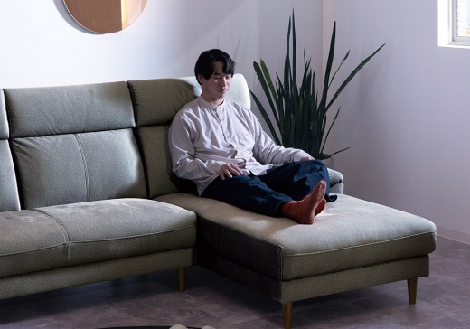 撥水機能ファブリックを使用したシミや汚れがつきにくいカウチソファ。