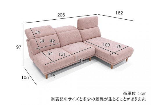 ※ソファ本体に高さ約2cmのプラスチック脚付き