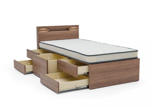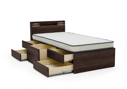 【睡眠スペース】と【大容量の収納】を1つにまとめられる機能的チェストベッドフレーム。お部屋に収納棚を置くスペースで悩んでいる方にピッタリのチェストベッドです。