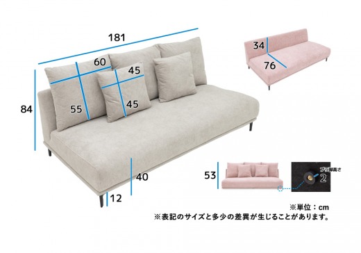 ※ソファ本体に高さ約2cmのプラスチック脚付き