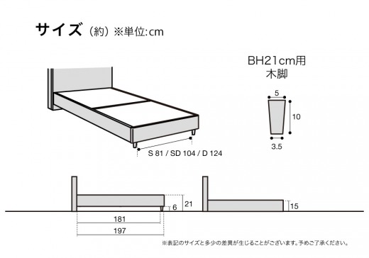 S(シングル)サイズはコンパクトにまとめた1人用サイズ。SD(セミダブル)サイズはゆったり寝心地の1人用でベッド下収納も更にワイドサイズ。D(ダブル)サイズは2人用で広々。必要に応じてサイズを選べます。