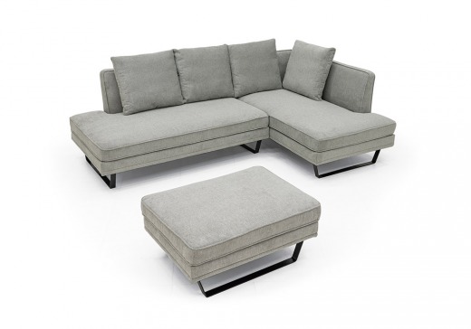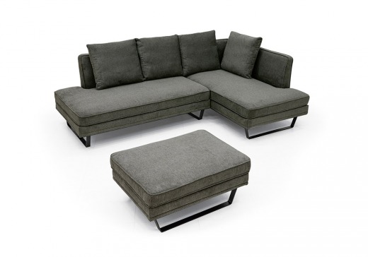 スツールはソファ横やシェーズ前にぴったりつけられるサイズ感。横になる姿勢を助けたり、多人数でのくつろぎに最適。