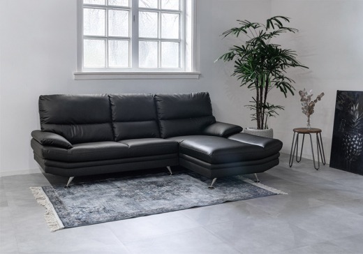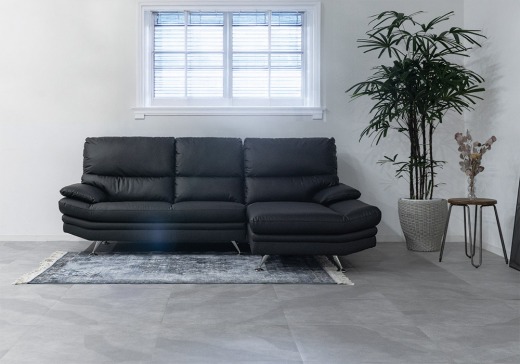 座面や背もたれには耐久性の高いソフトレザー”EPU”を使用し、お手入れも簡単。モダンなデザインがリビングに映えるスタイリッシュなソファです。お部屋に合わせてサイズを2P、3P、カウチL/Rの4パターンからお選びいただけます。